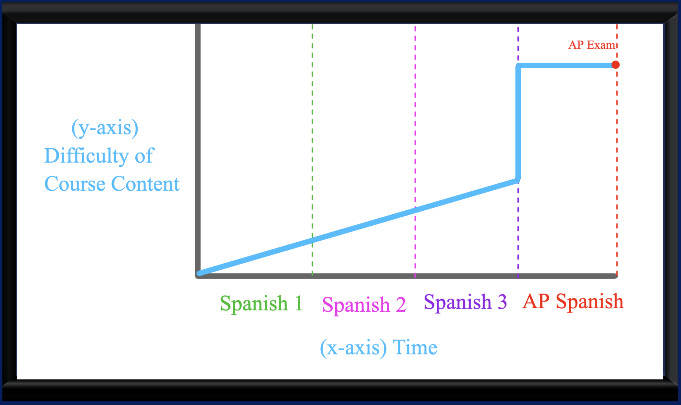 Fret not. :) We see this situation time and time again, and we can help! Two questions to first consider are how this all happens and why this course feels so much harder than previous years’ courses. The why is very easy to answer. The course feels a great deal harder because, objectively speaking, it usually is!! The difficulty of the course content is typically exponentially higher than most Spanish 3 courses. The how is more of a question of how AP Spanish Language course curriculums are planned. While every district is different, and certain schools have different standards, here is how the difficulty of the coursework given to students usually progresses over four years: